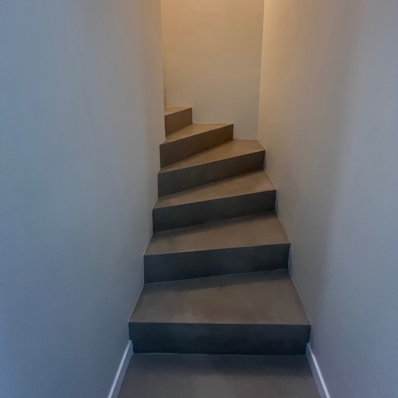 2. Revêtement de sols – Béton ciré. Un revêtement décoratif polyvalent, applicable sur les sols et les murs. Il offre une finition contemporaine, épurée et élégante, adaptée à de nombreux styles d’aménagement.